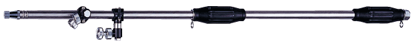 | 従来の畦畔ノズルに特殊ステンレスパイプを使用し軽量化したため長時間の防除作業にも疲れず、足元から遠方まで帯状に均一散布を可能にしました。 |